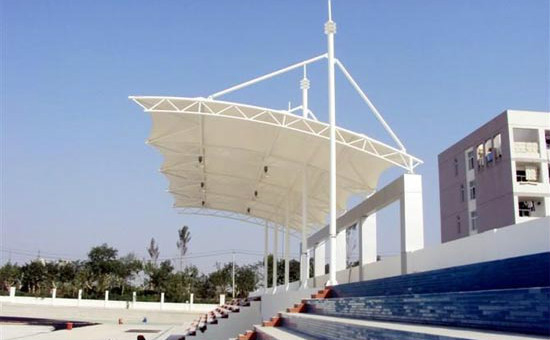 膜結(jié)構(gòu)看臺新式且新奇的構(gòu)造方式,因為其造型設計灑脫幽美、材料輕巧便于拆卸、有高寬比的自洗特性和耐老化工作能力,很多的新教學區(qū)基本建設都剛開始選用這類與眾不同時尚潮流的構(gòu)造方式;